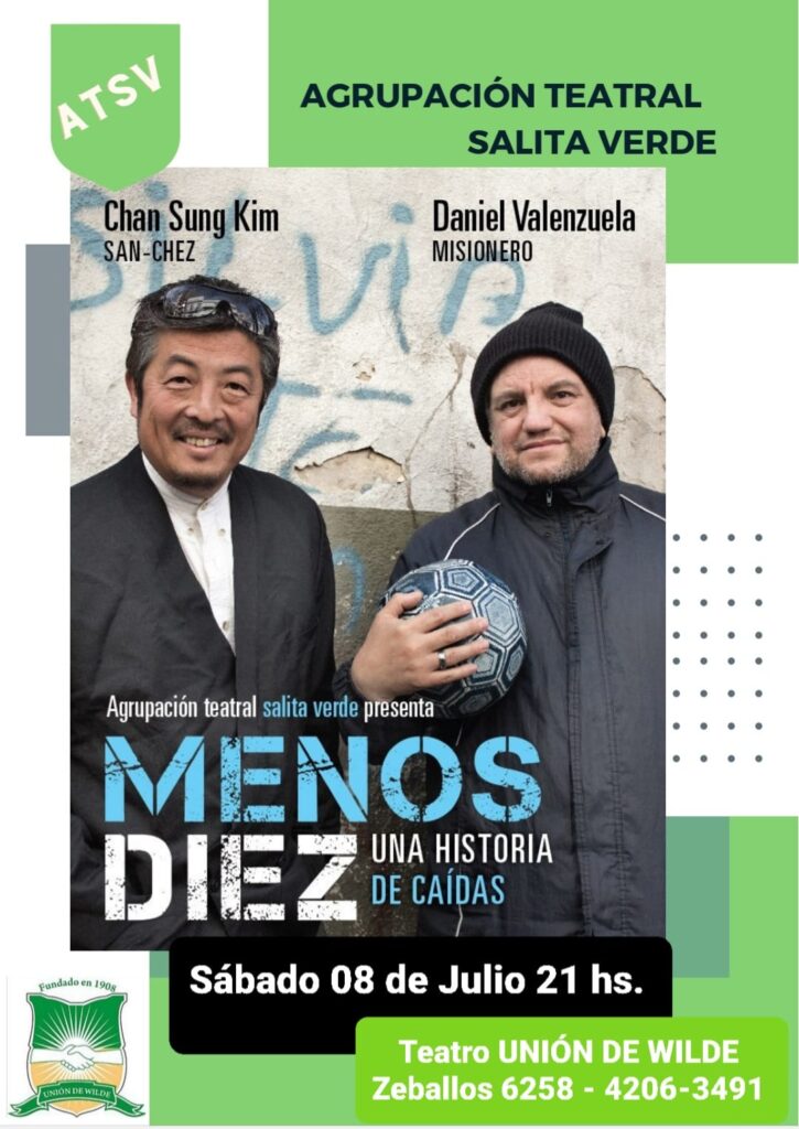 Agrupación Teatral Salita VerdePresenta:MENOS DIEZ(Una historia de caídas) SABADO 08 DE JULIO – 21 HS. Entrada General: $ 2.000(Promo: 2 X $ 3.000)Entradas en Venta en BoleteriaDe…