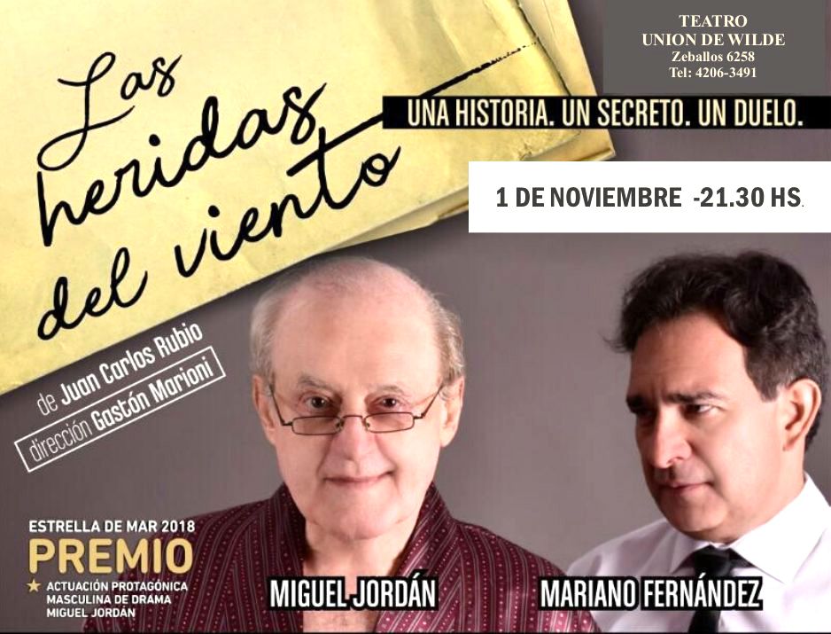 Las heridas del viento de Juan Carlos Rubio Una historia un secreto un duelo Dirección: Gastón Marioni Premio Estrella de Mar 2018 Actuación protagónica masculina de drama Miguel…