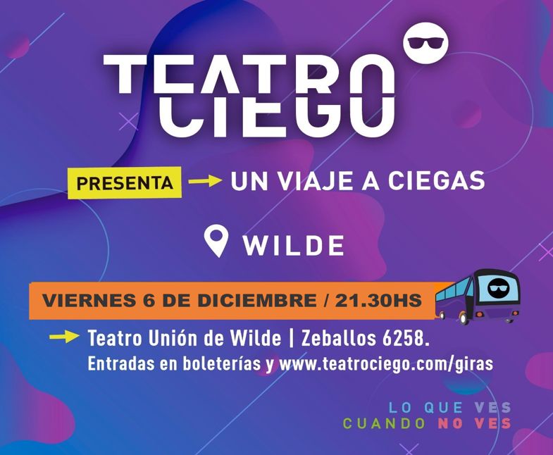 Presenta: Teatro Ciego.Autores: Martín Bondone y Gerardo BentattiViernes 6 de Diciembre 21:30 Hs. Valor de la entrada: General $ 500.Teatro Unión de WildeZeballos 6258 – WildeReservas al…