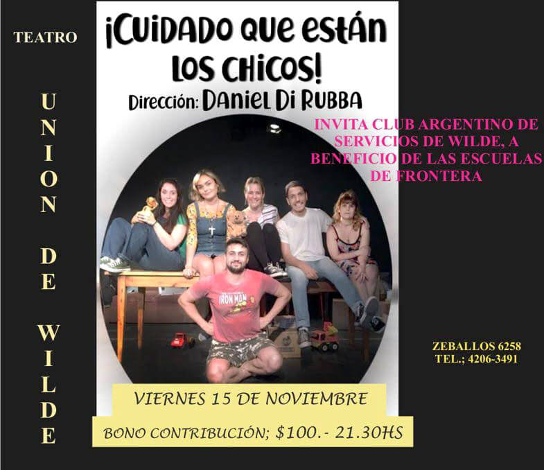 Dirección: Daniel Di Rubba Viernes 15 de Noviembre 21:30 Hs. Bono contribución $100.- Invita Club Argentino de Servicios de Wilde a beneficio de las escuelas de frontera…