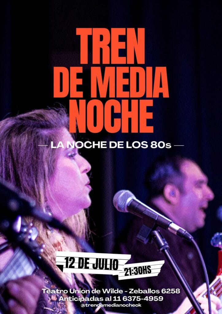 Sábado 12 de Julio – 21:30hs El Tren de Medianoche llega a Wilde parala noche de los 80s ⭐️🥳@trendemedianocheok Entrada Gral: $ 8000 (Menores de 12 no…