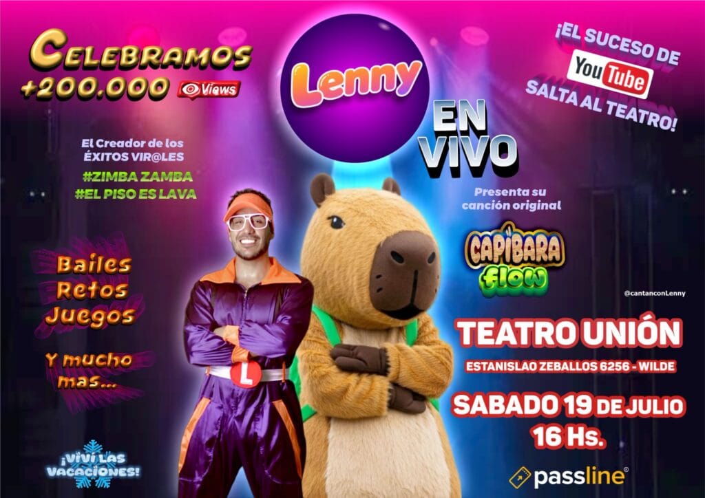 PARA LOS MAS PEKES !!!! LENNY.(Musical Infantil)@lennyfreak Sábado 19 de Julio – 16 hs. Entradas General $ 15.000○Boletería de lunes a Viernes de 09 a 12 o…