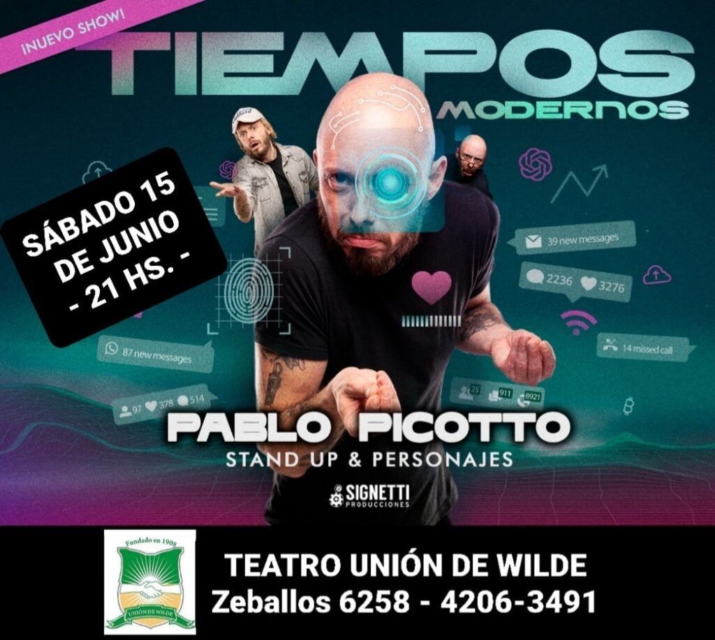PABLO PICOTTO… TIEMPOS MODERNOSStand Up & PersonajesSábado 15 de Junio – 21.00 hs. – Entrada General: $ 10.000Boleteria: De 09.00 a 12.00 hs o de 16.00 a…