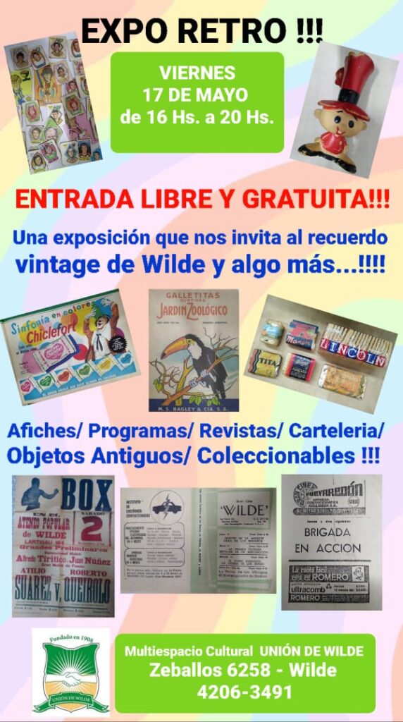 Entrada Libre y Gratuita!!! Te esperamos !!!Viernes 17 de Mayo. De 16 hs a 20 hs.Multiespacio Cultural Unión de Wilde.🎭TEATRO UNIÓN DE WILDE🎭🏛Zeballos 6258 – Wilde☎️Reservas:4206-3491/ WhatsApp…