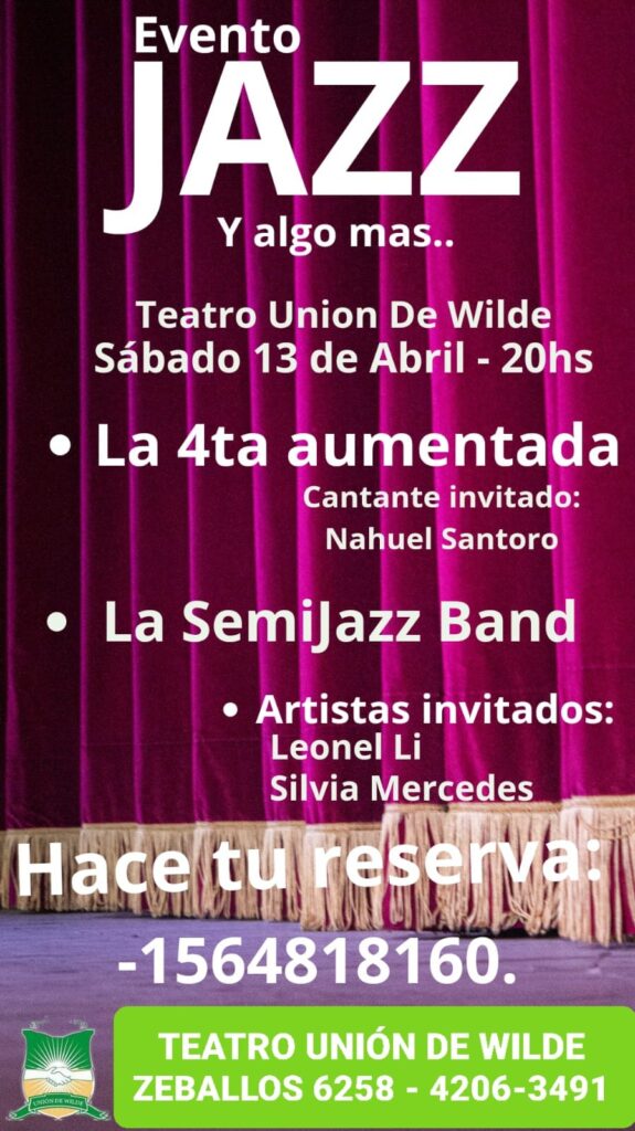 Evento JAZZ y algo más….●La Cuarta Aumentada.Cantante invitado: Nahuel Santoro●La Semijazz BandArtistas Invitados: Leoneo Li y Silvia Mercedes SÁBADO 13 de ABRIL – 20.00 hs. Entrada General:…