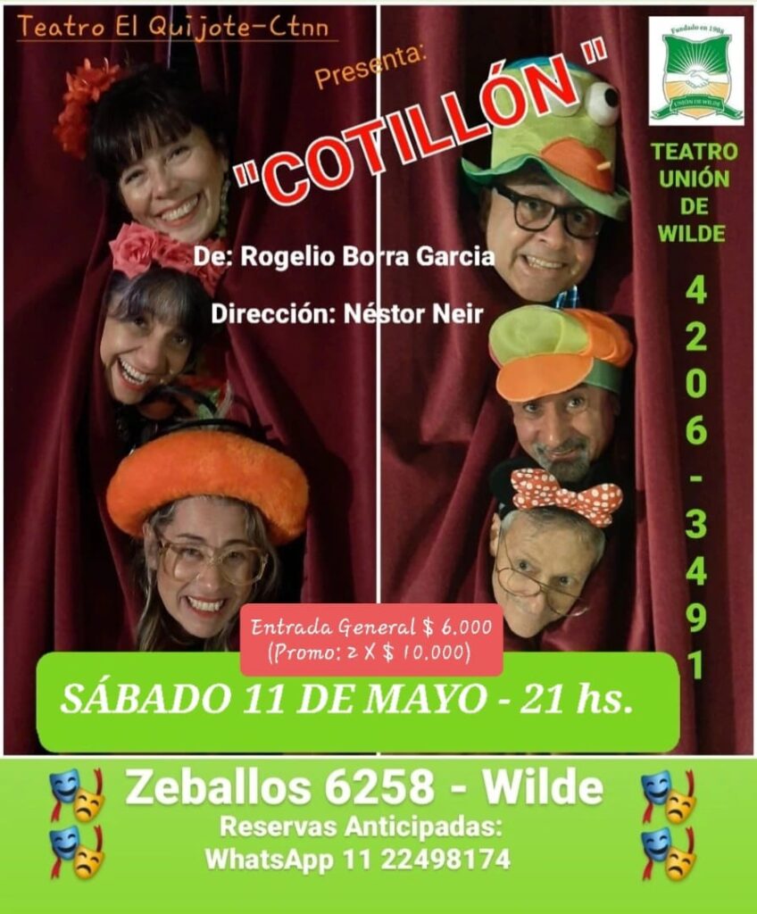 Entrada General: $ 6.000(Promo: 2 X $ 10.000) Boleteria: De 09.00 a 12.00 hs o de 16.00 a 20.00 hs. (Entradas solo en efectivo) OBRA: “COTILLÓN”SÁBADO 11…